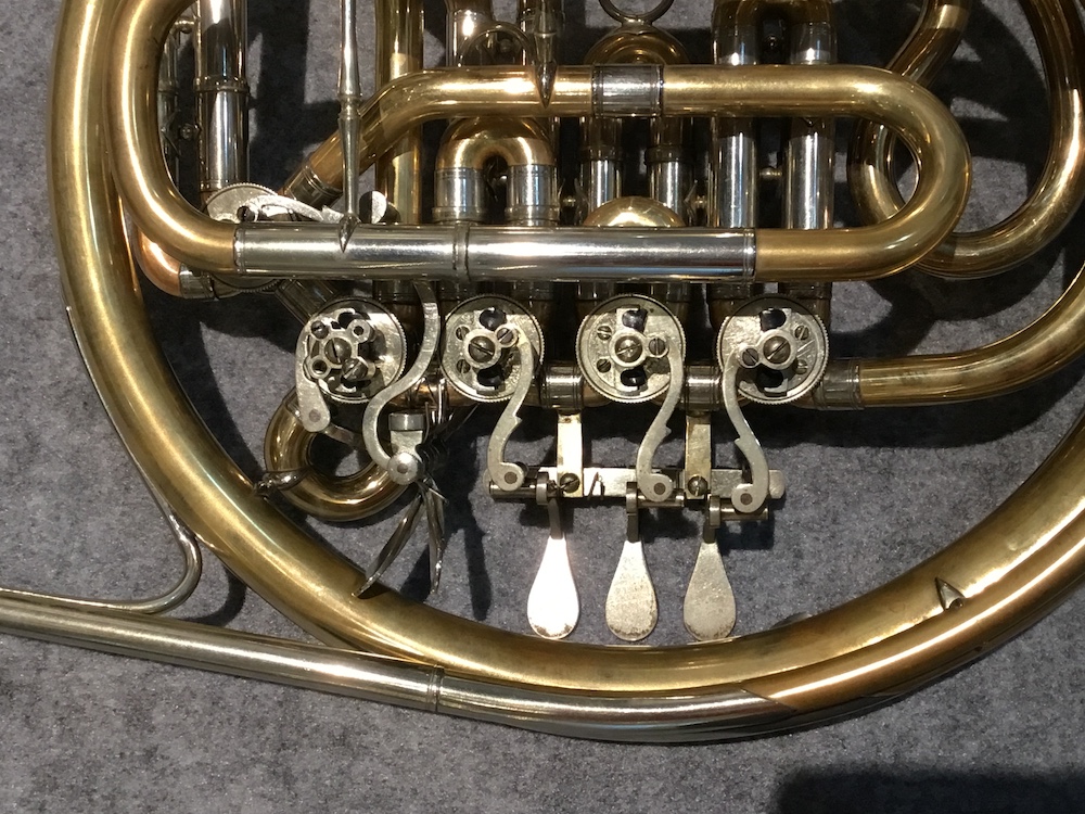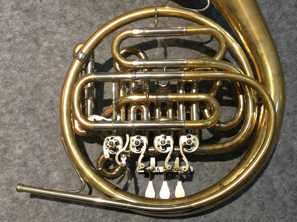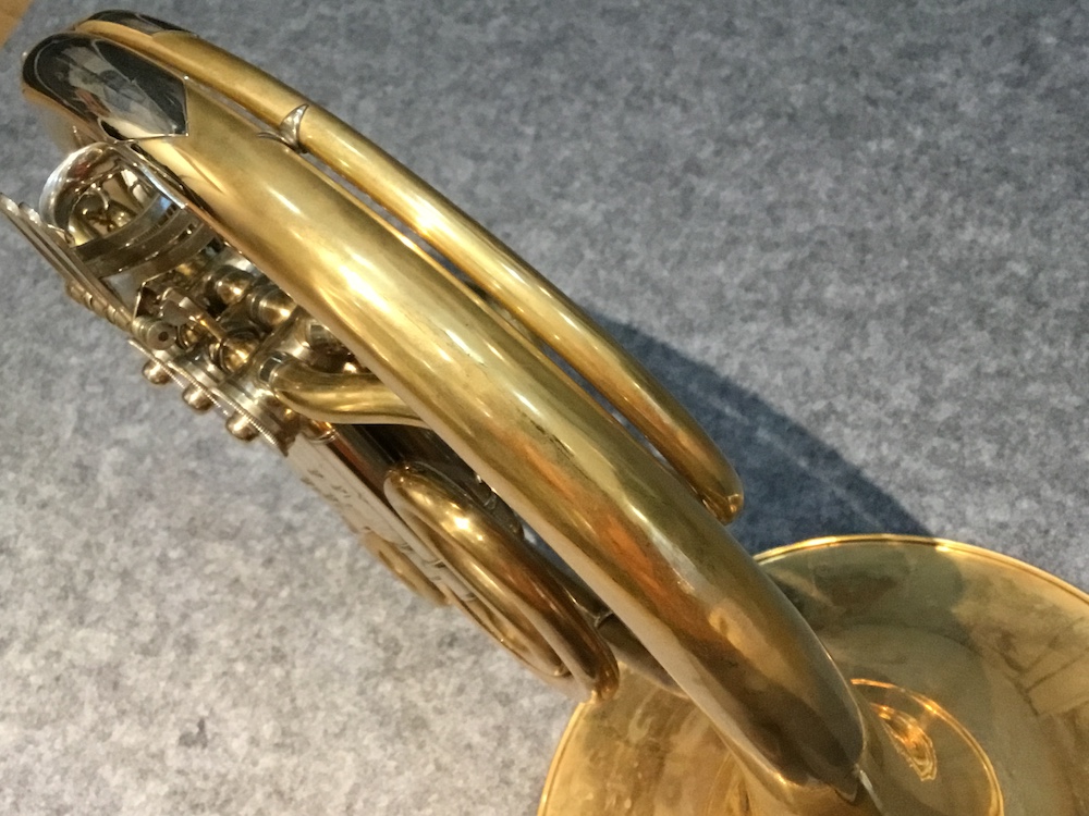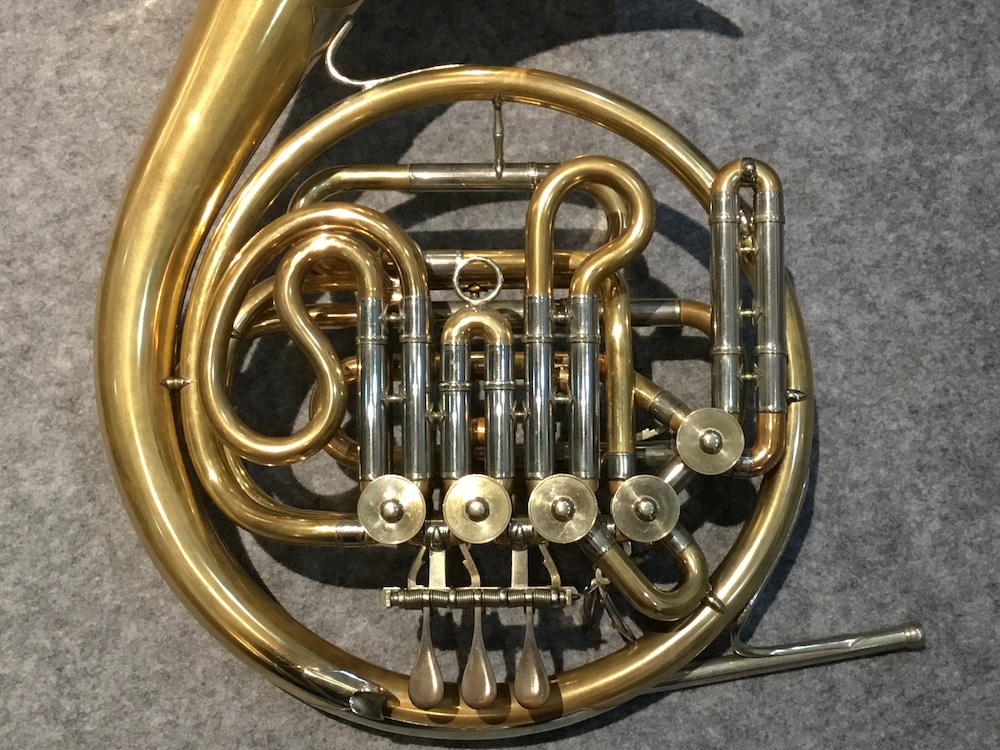 現在の市販品はAugust Knopf銘ではなく、長男のHerbert Fritz Knopf銘で、その孫クリスティアンChristianによって引き継がれているが、このホルンは、今は無きAugust Knopf銘で製作された、一枚取りベルという一枚の金属板から作られたベルを有するダークな響きが特徴の個体です。